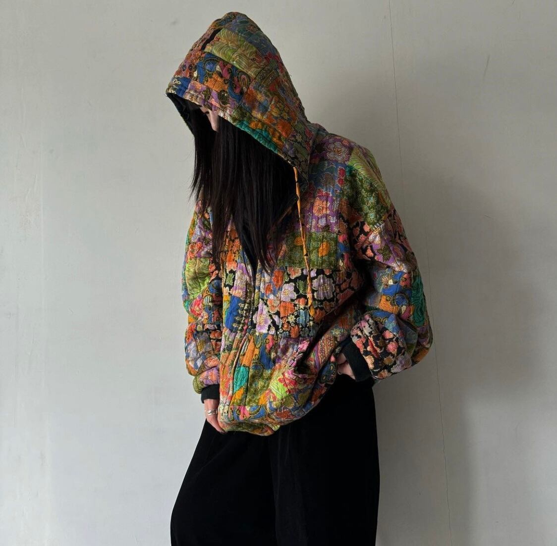 カラフルなパッチワーク調でインパクトのあるアイテム