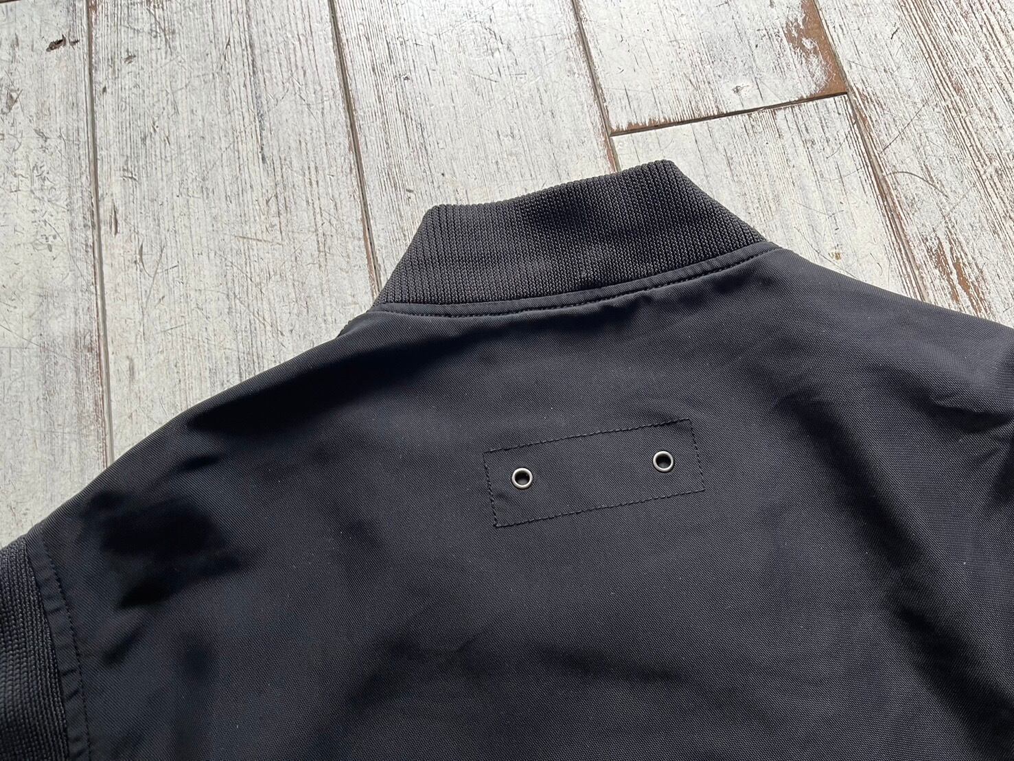 アームホールや肘当てがニット生地で切り替えられた機能的かつソリッドなデザインのナイロンブルゾン