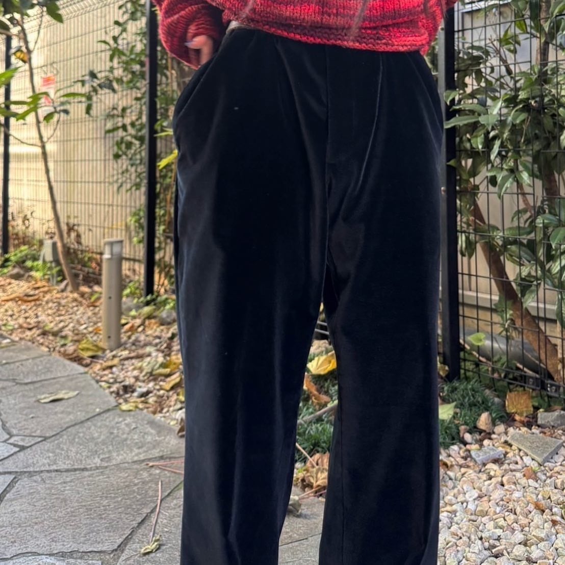 高級感溢れる艶感のあるベロア生地のワイドスラックス
