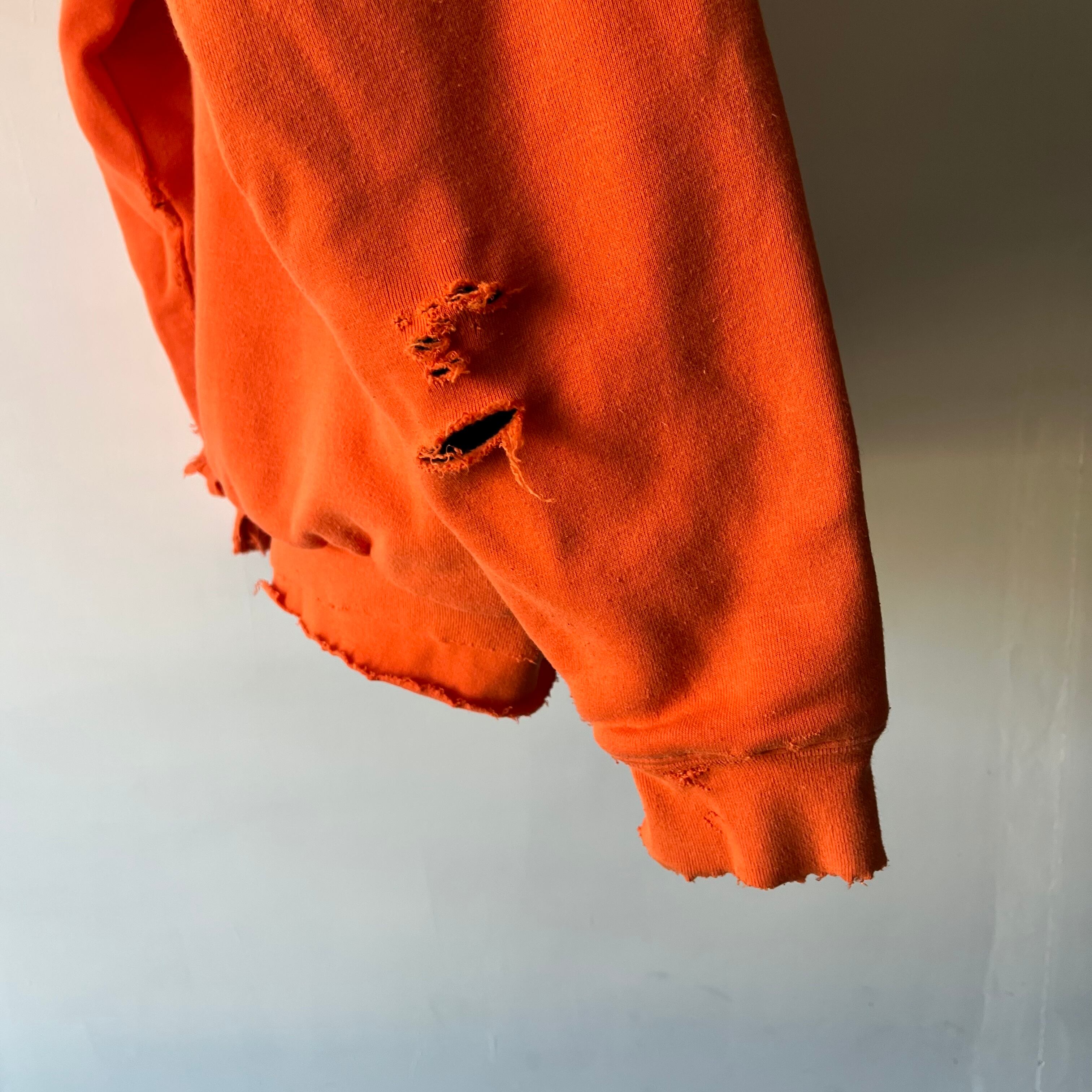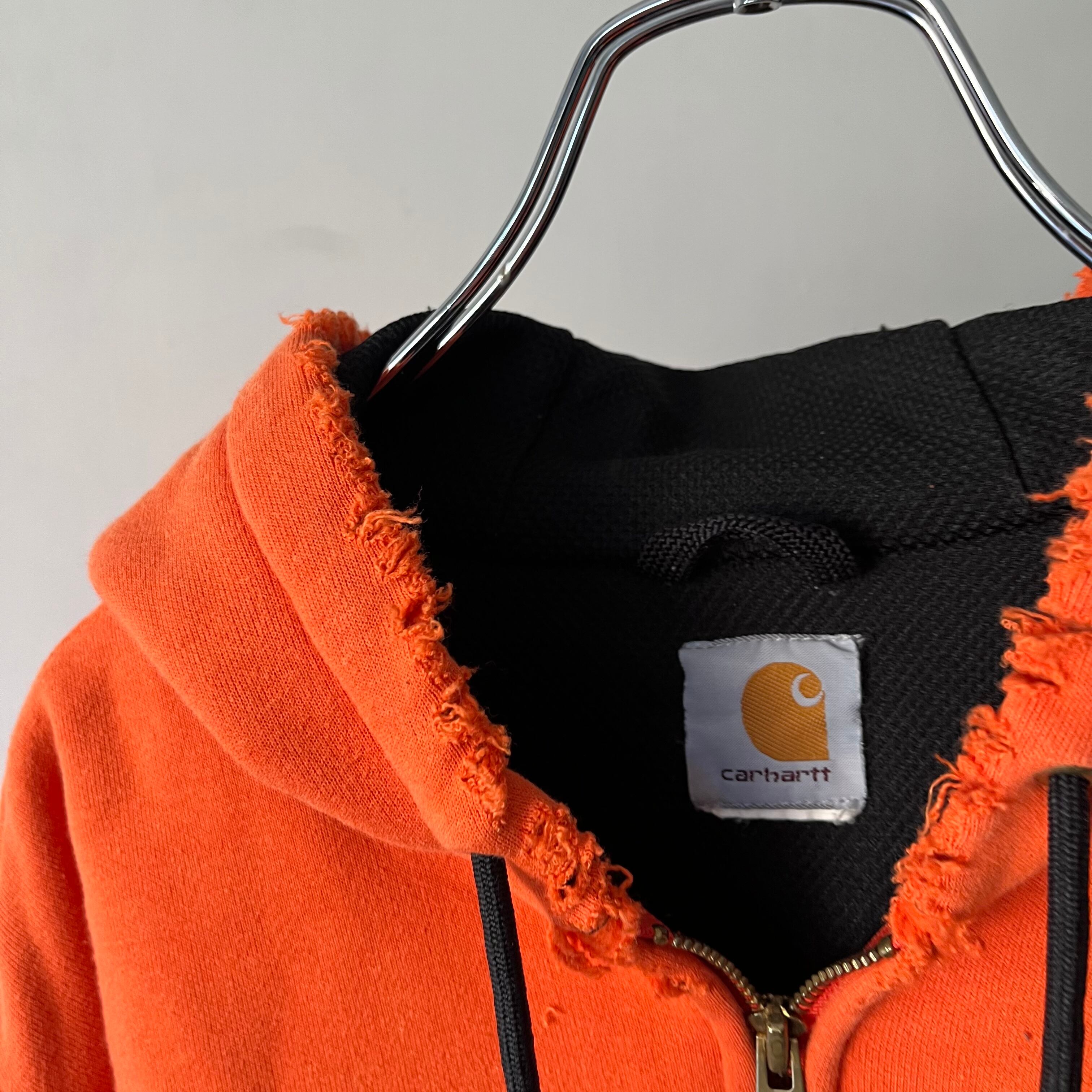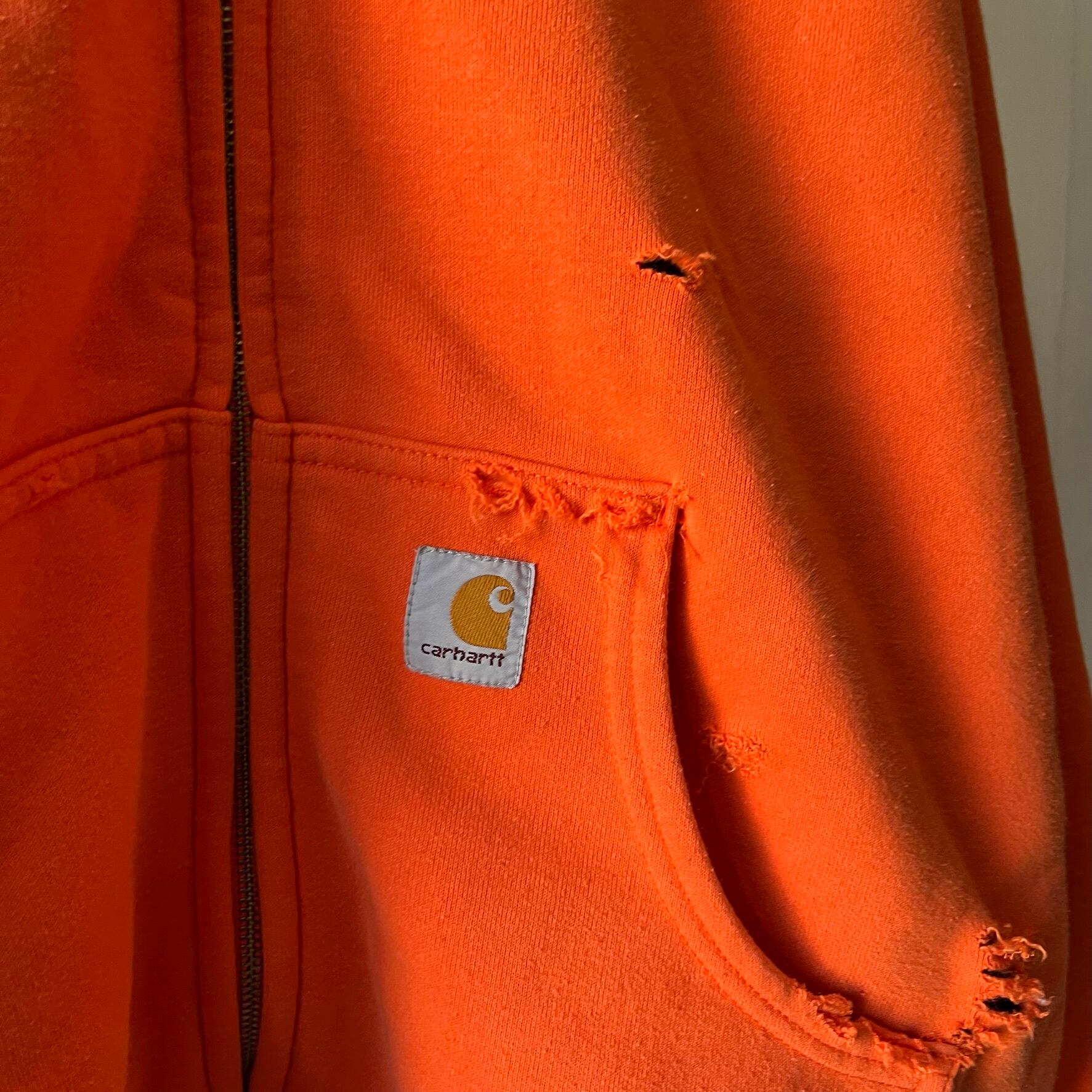 発色の良いビビッドなオレンジカラーのジップパーカー